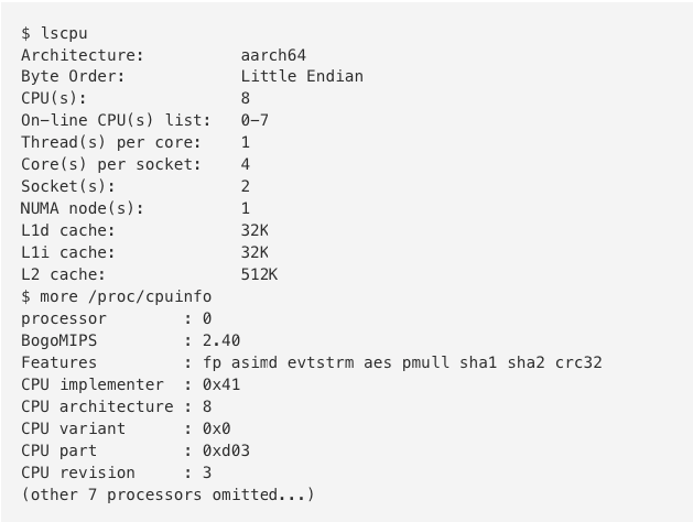 我们已经在miniNodes.com上运行ARMv8服务器,如果您查看CPU信息,将会看到以下内容: