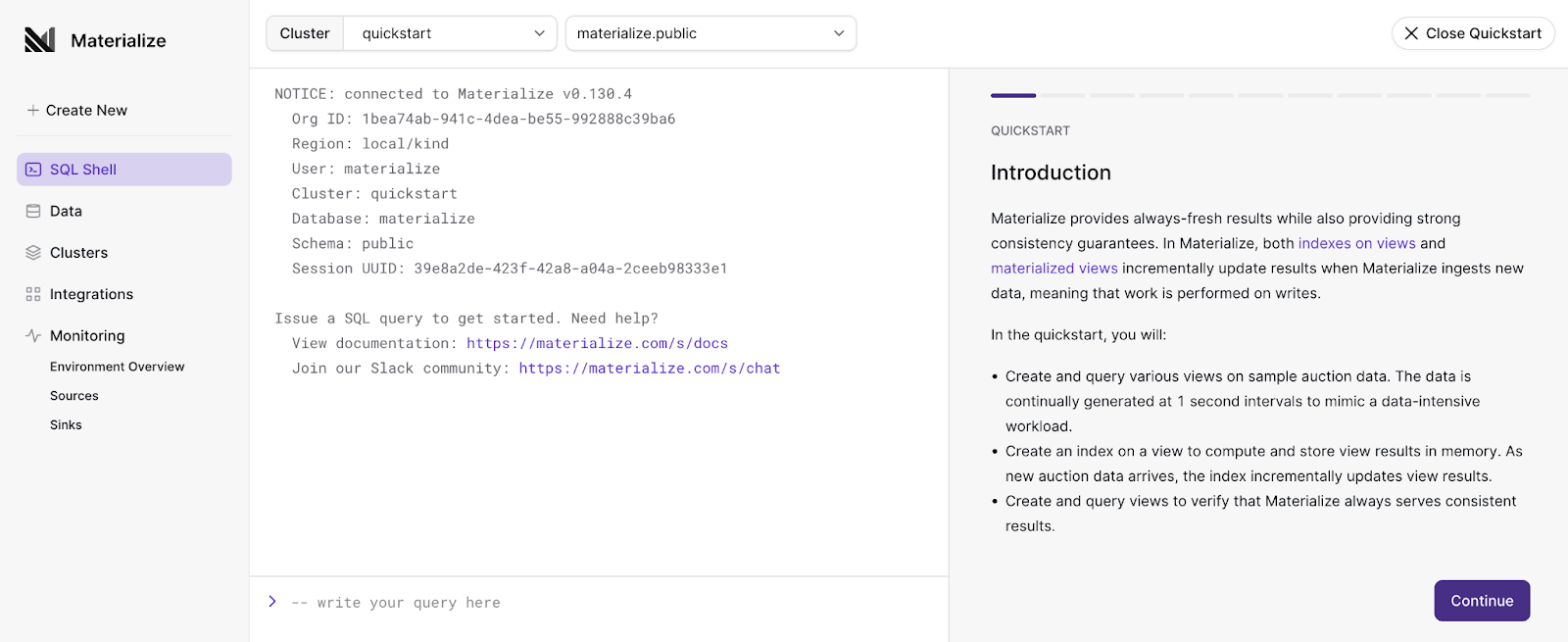 您现在可以运行快速入门,在 MinIO 之上开始使用 Materialize。