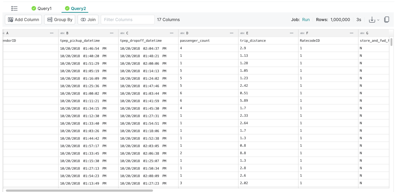 SELECT count(*) FROM nyc_taxi_small; SELECT * FROM nyc_taxi_small;
