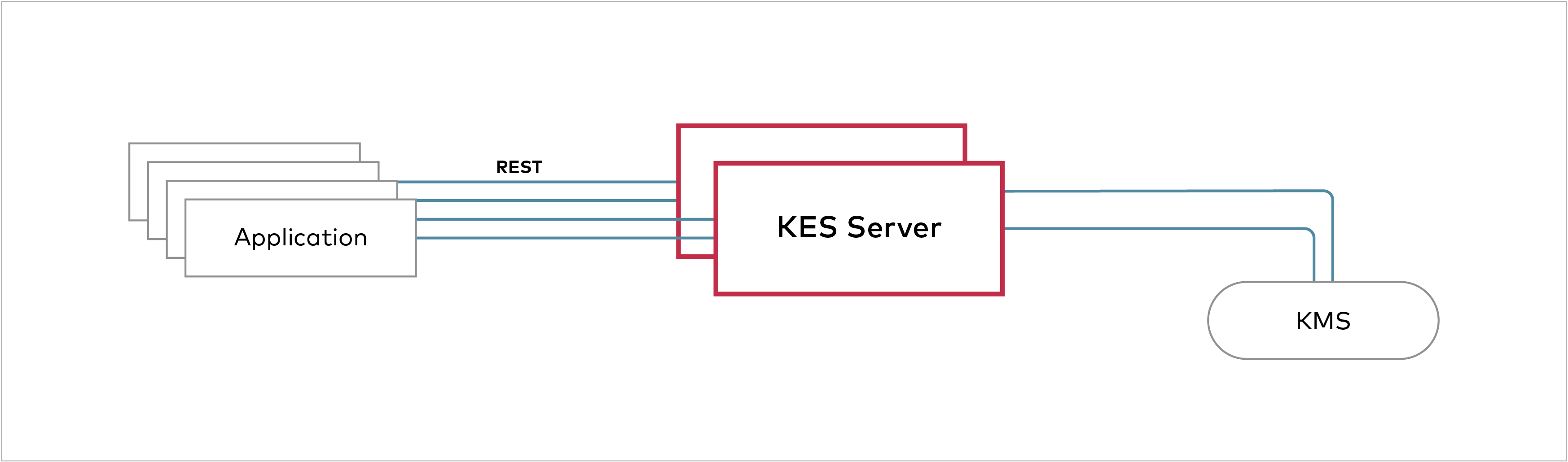 因此,仍然存在一个中央KMS,用于保护主密钥并充当基础结构中信任的基础。但是,您不需要为每套应用程序部署和管理一个KMS。而是,应用程序可以从KES服务器请求新的DEK或要求KES服务器解密加密的DEK。