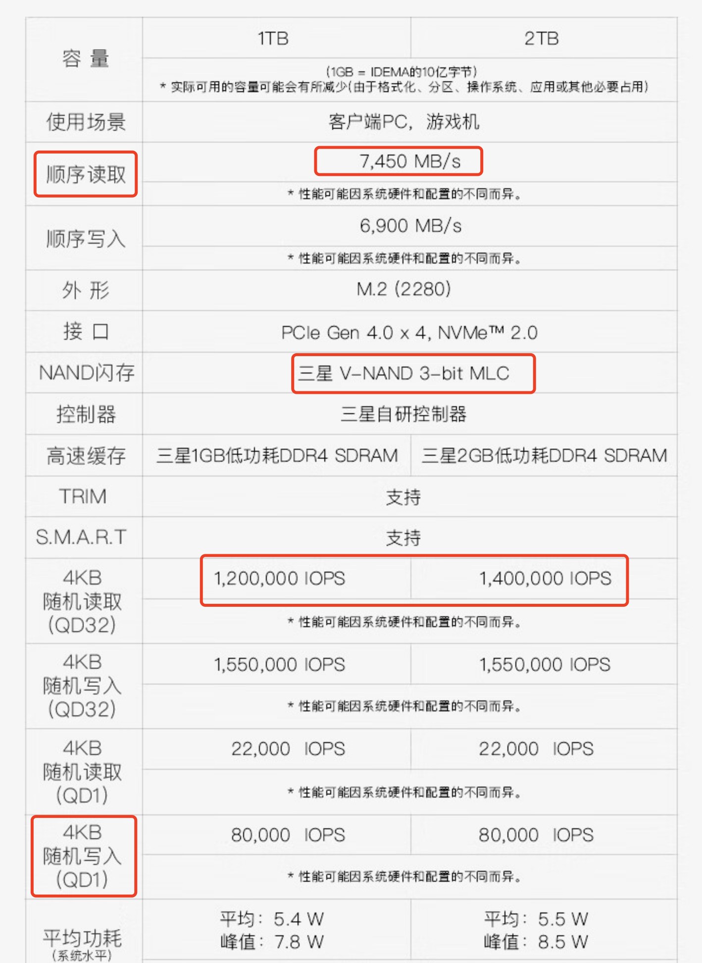 我们有图有真像,我们看看国际最知名的固态硬盘厂商,三星的硬盘测评参数: