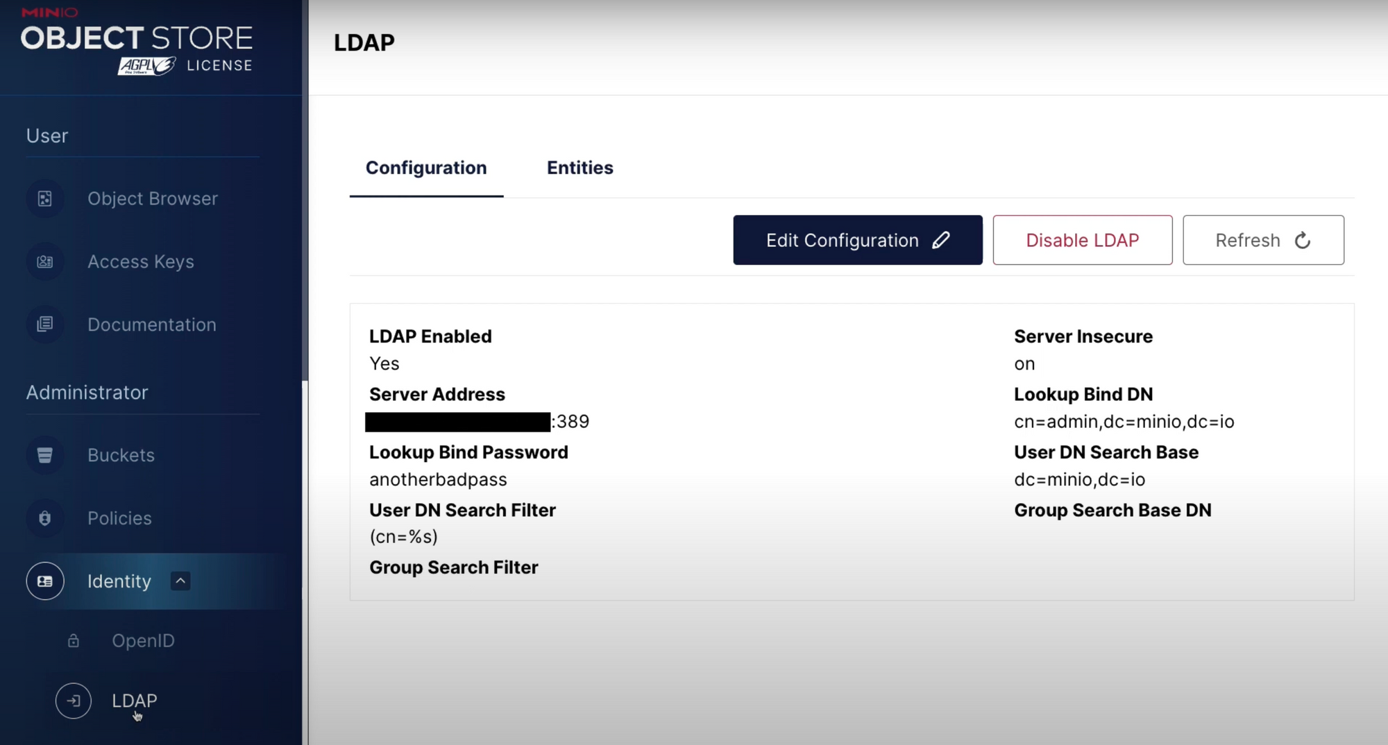使用 OpenID 时,策略定义将保留在 MinIO 上,但是您可以添加一个标志来告诉 OpenID 告诉 MinIO 应该附加哪些策略。对于 LDAP,它在另一个方向上工作——您告诉 MinIO 将哪些策略附加到来自 LDAP 的哪些用户和组。使用其中任何一个时,MinIO IDP 将被停用,但上一个视频中提到的 root 用户仍然可用。由于该过程比快速博客中描述的要复杂一些,我们建议您观看视频的后半部分,其中 Will 将运行连接到 OIDC 和 LDAP。